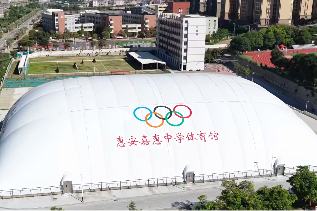 在惠安县深入推进体教融合发展的进程中,惠安嘉惠中学迎来了一座备受瞩目的新建筑——占地4556.63㎡的纯白气膜运动馆。