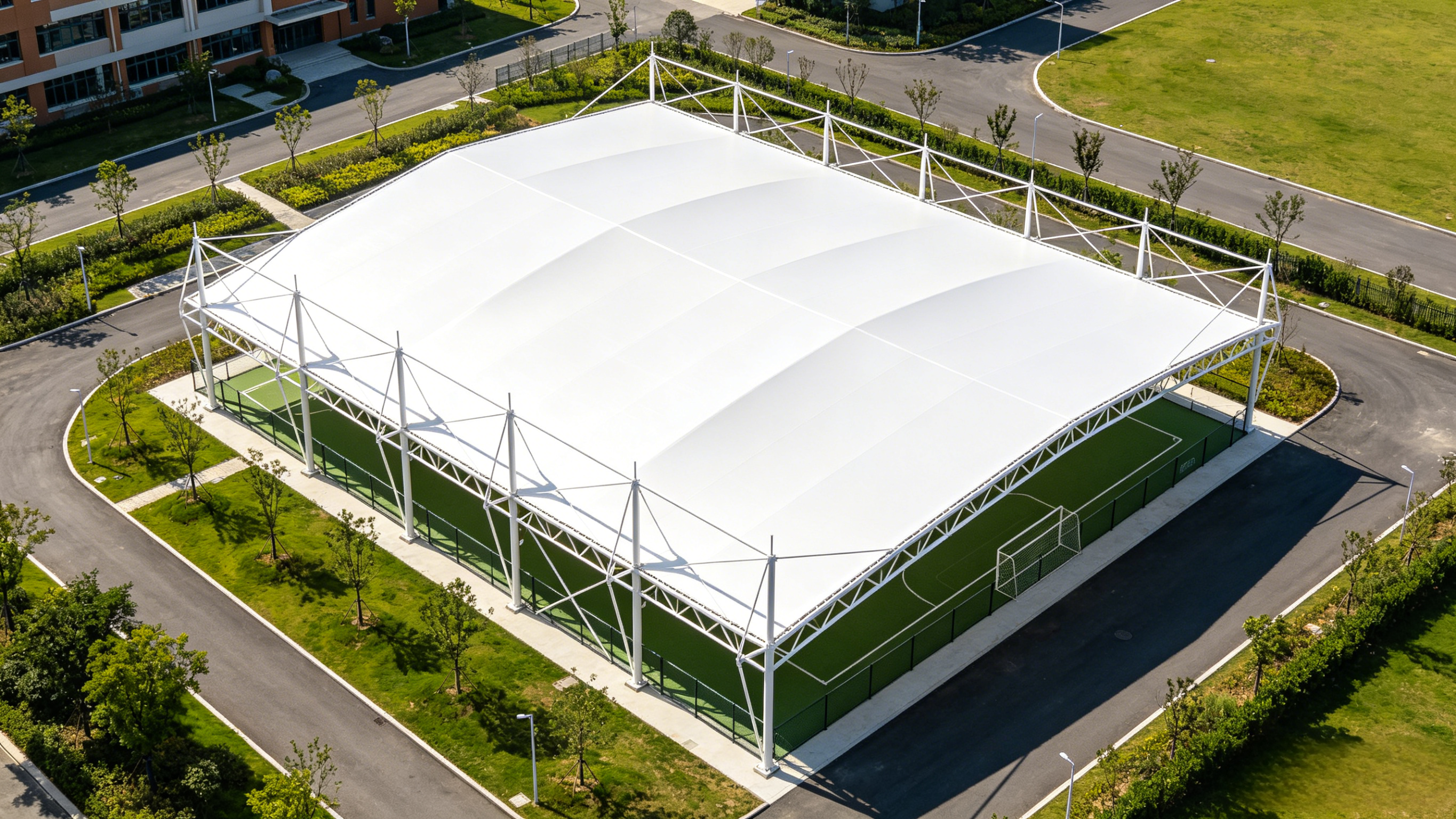 风雨操场采用先进的钢结构与膜结构设计,不仅外观简约大气,更兼具稳固性与实用性。大跨度空间可将场内运动设施配置即将拉满,满足多元运动需求。¥ 0.00立即购买