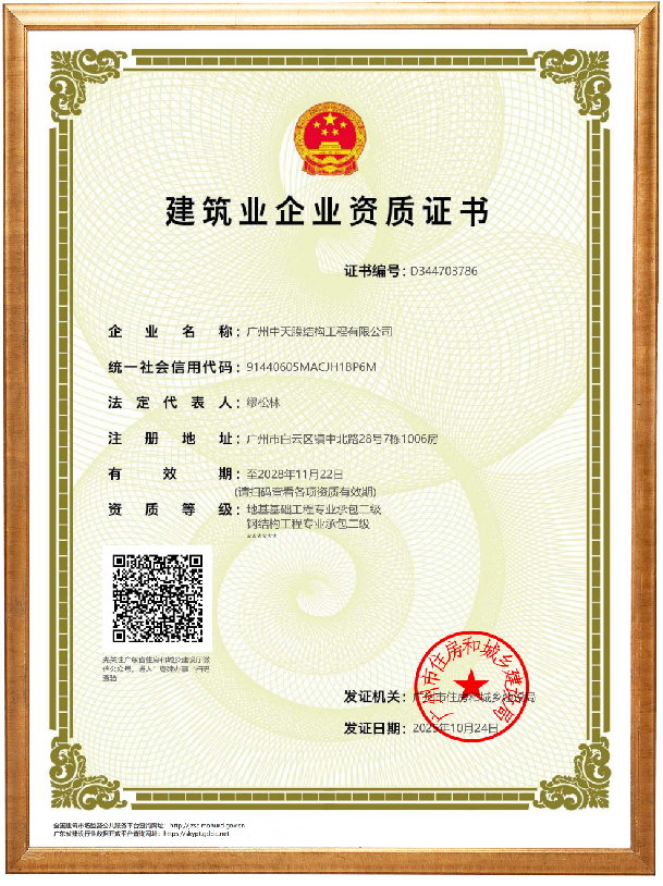 广州中天膜结构工程有限公司是一家专注于膜结构工程的高新技术企业,持有钢结构工程专业承包二级与地基基础工程专业等建设资质,具备从设计到施工的专业技术能力。