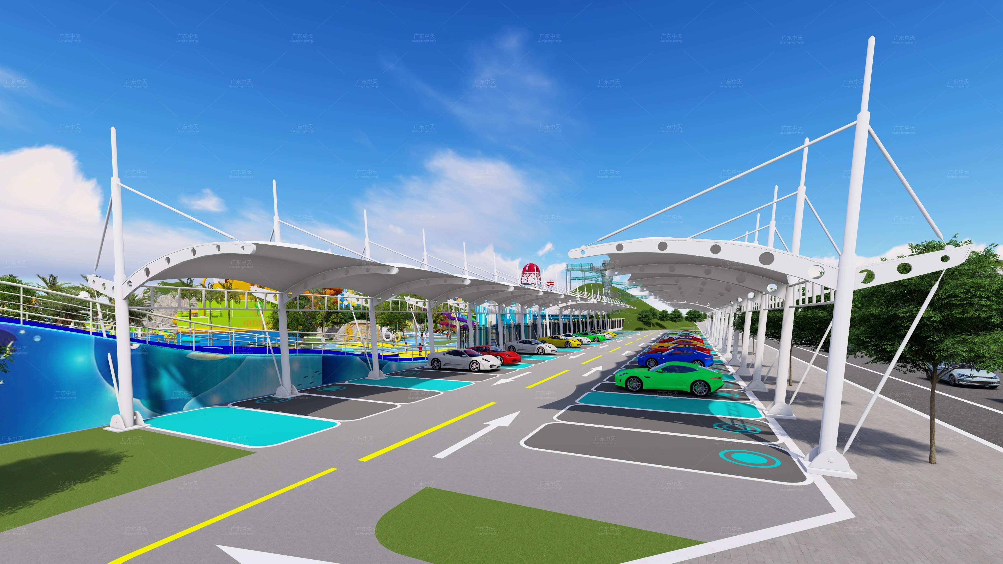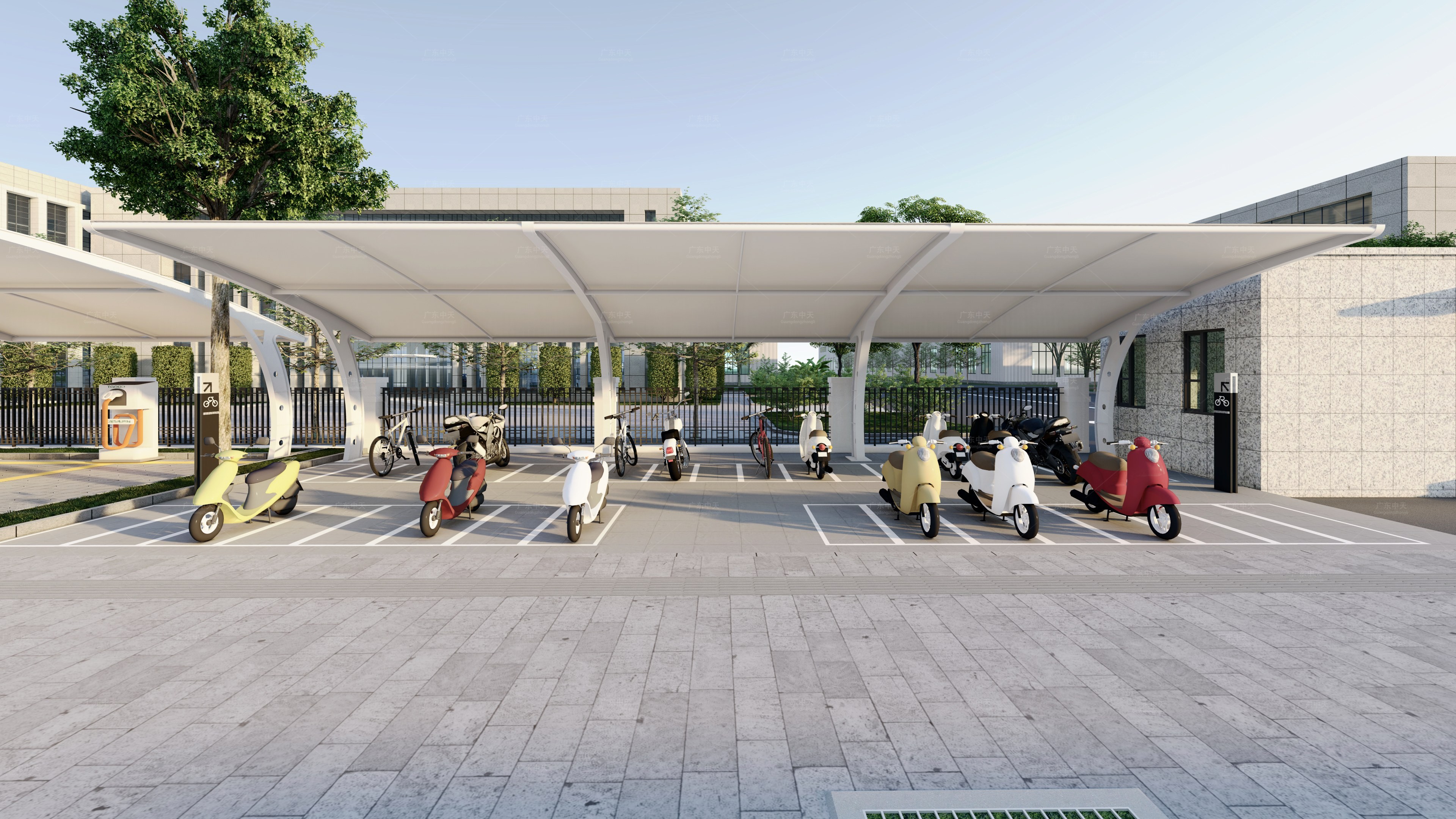 以上的种种问题,都让传统停车棚逐渐退出市场,取而代之的是兼具耐用性和美观度的膜结构车棚。