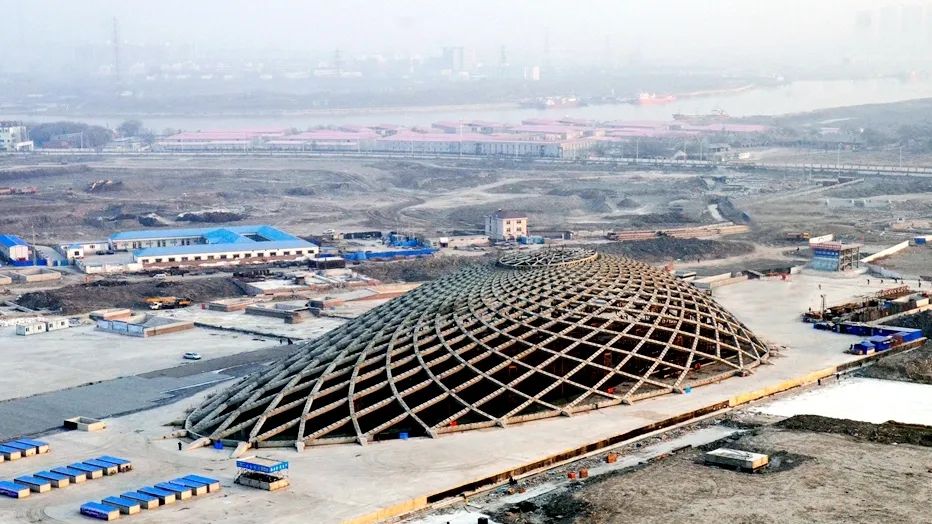 天津滨海站的设计灵感汲取自海洋文化,其形态源自鹦鹉螺与向日葵的螺旋线。设计师通过数值“悬挂”形成初始形体,再反转得到贝壳形壳体。这座穹顶南北向长 143.9 米、东西宽 80.9 米,最高点距地面 25.8 米,重达 4200 吨,相当于半个埃菲尔铁塔的重量,却实现了中间无任何支撑的大跨度设计。