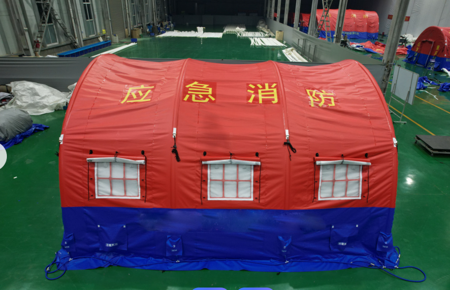1.运输便捷,快速搭建:充气帐篷无金属骨架,折叠后体积小,重量轻,便于批量运输和人力快速转运。