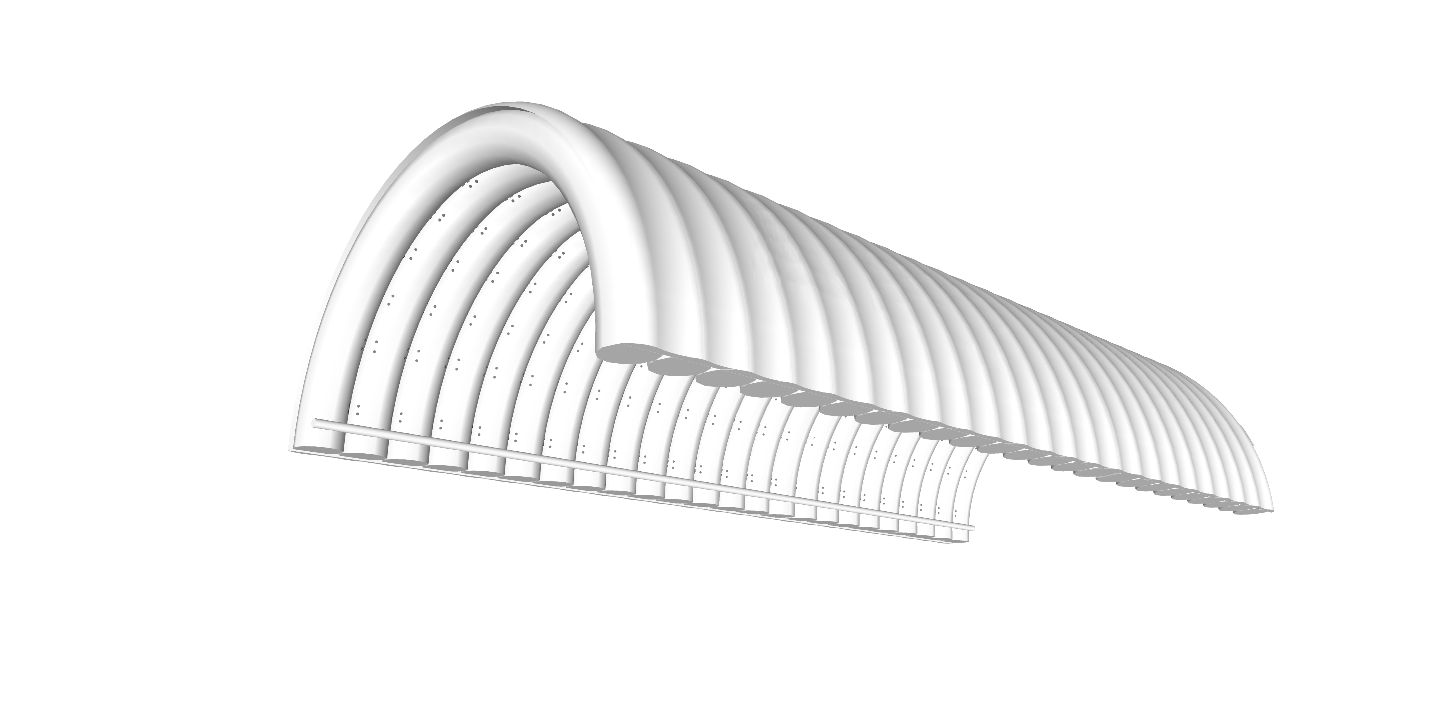 简单来说,其结构如同由无数根充气 “梁柱” 拼接而成的空间体系,单个气肋采用密闭式设计,内部填充压缩空气后,膜材在气压支撑下形成具有足够抗弯、抗压强度的刚性构件,多个气肋按照建筑跨度、造型需求有序排布,再通过膜面连接形成整体围护结构。