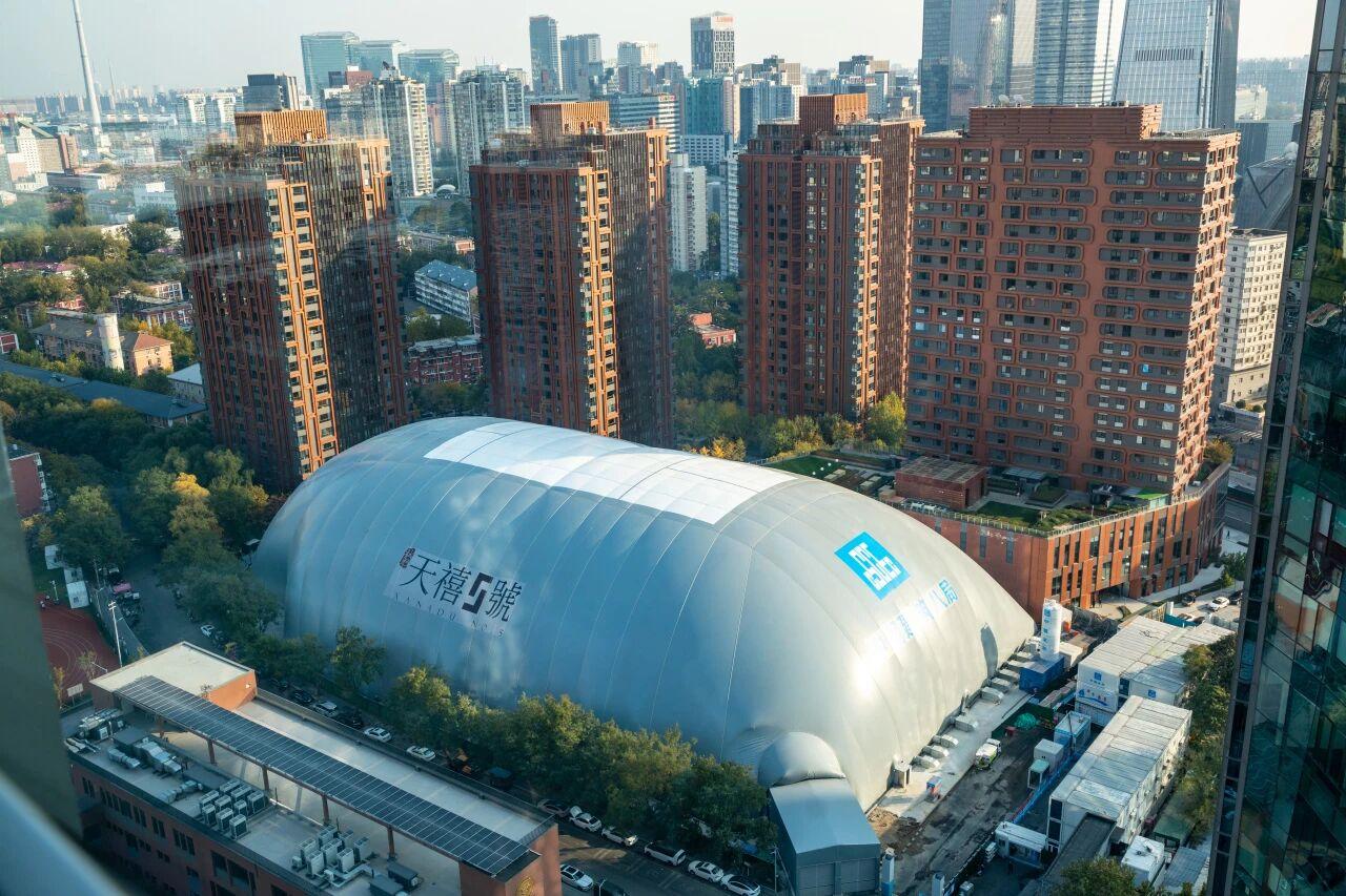 为切实解决这一难题,呼家楼街道积极引导项目方探索绿色施工新模式,最终引入基坑气膜技术。这一创新举措直接覆盖了全项目占地面积90%以上,面积超过10000平方米,有效降低了40分贝以上的施工噪音和90%的扬尘,将施工扬尘与噪声牢牢“锁”在工地内部,从源头实现污染管控。