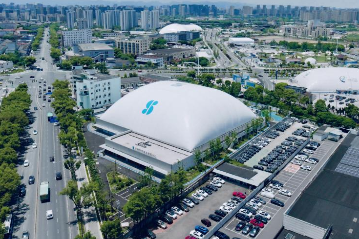 宁波甬江TOD体育公园所有运动场馆均引入可回收的气膜建设,不仅造型独特,馆内无梁无柱,视野开阔。相比于传统体育馆,气膜场馆具有安全性高、抗震、防霾、施工周期短、成本低、经济节能、造价及运维成本低等优点,也可根据实际情况随时拆卸组装移动,能有效减少后期改造所产生的环境污染和经济成本。