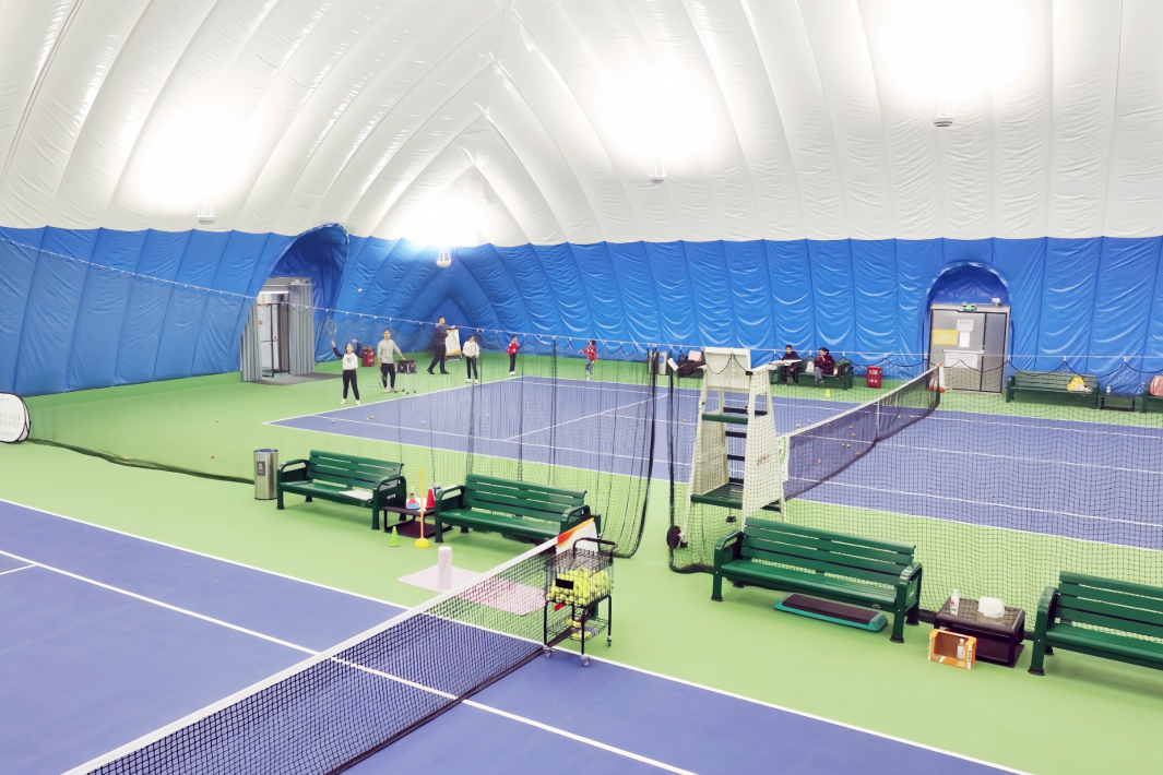 气膜网球馆总建筑面积1521㎡,囊括两块标准网球场地,为网球爱好者提供了一个安全舒适、四季咸宜的打球圣地。