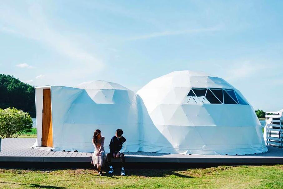 三是体验感佳,膜材透光性强,白天引入自然光线,夜晚可仰望星空,同时具备良好隔音与抗风防雨性能,兼顾野奢氛围与居住舒适度;