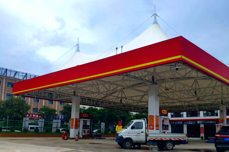 加油站棚的核心是安全与合规。膜材具备阻燃、抗静电性能,符合加油站消防安全规范,能有效降低安全风险。